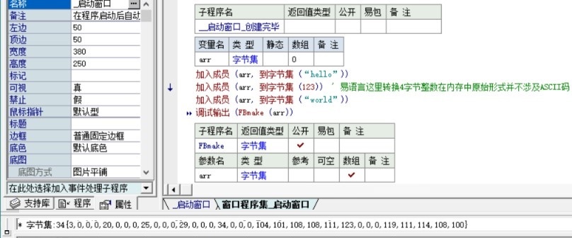 编程语言的开发者在实现完整版FB之前,可以先实现基于'字节集数组'作为参数的FBmake版本函数,该函数仅仅只是一个最简化封包实现的过渡,来测试各自字节数据的参数在封包后的完整字节集存储分布情况